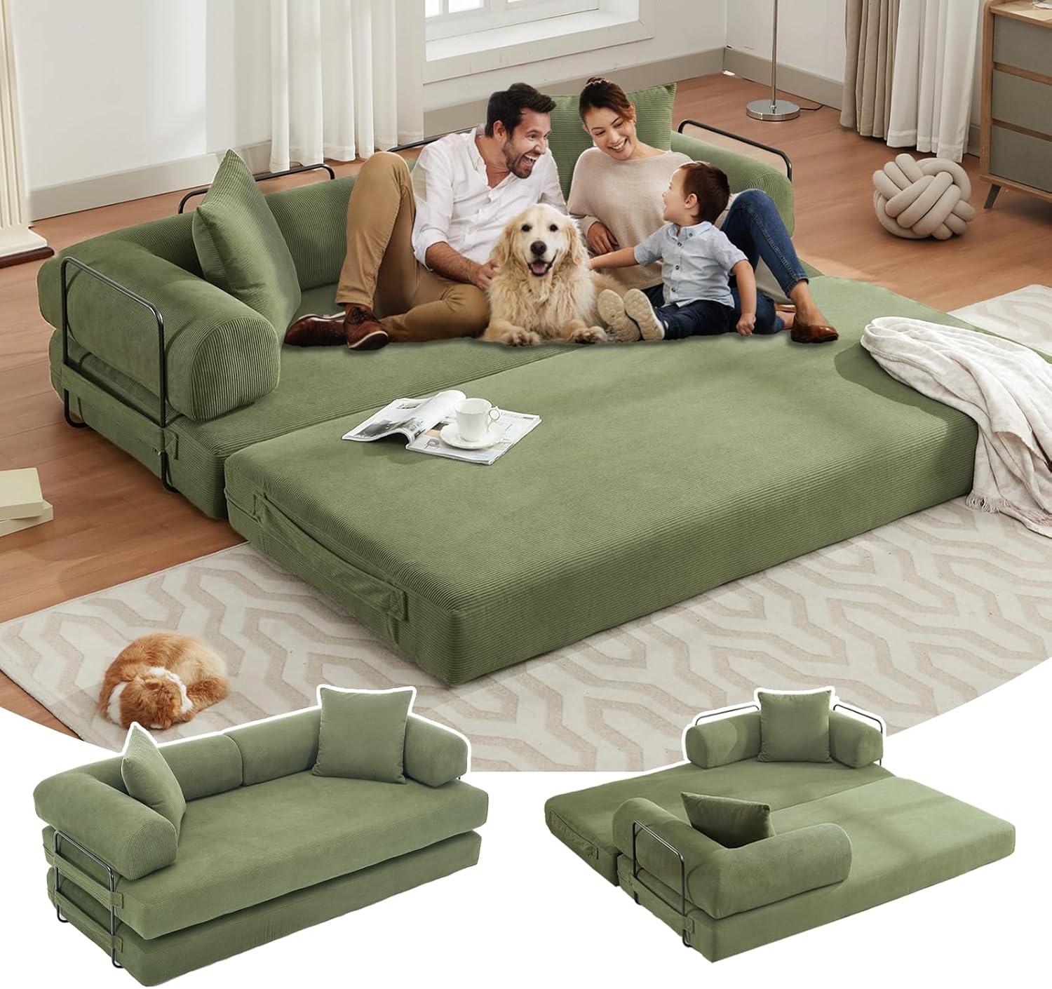 We recently had the chance too try out the 78.5″ Convertible Sleeper sofa Bed, a versatile 4-in-1 modular futon upholstered in soft corduroy with a refreshing green hue. Designed to effortlessly shift between a lounge couch, guest bed, futon, and customizable seating, this piece promises to make the most of limited space without sacrificing comfort. From its breathable, high-density foam cushioning to the convenient removable pillows and non-slip base, we explored how well this sofa bed adapts to daily living and overnight guests in our home. Join us as we dive into the details of its design, functionality, and ease of care to see if it lives up to its multi-purpose appeal.
