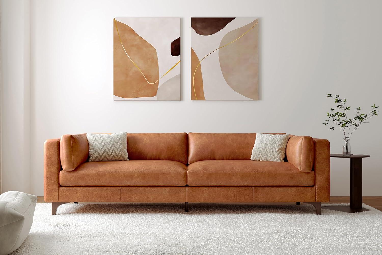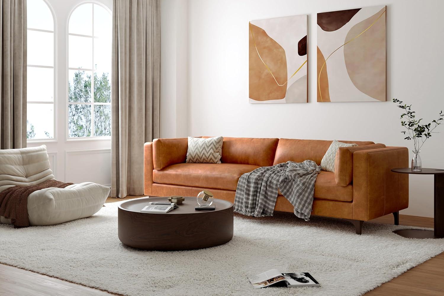 From the moment we unboxed this 93″ leather couch, the ⁢craftsmanship immediately impressed us. Upholstered in luxurious italian Top Grain nappa 11000 leather, its saddle tan hue adds a warm, inviting tone without veering into an overly orange shade. The wide seat and plush cushioning —‍ a combination of ‍ high-density foam ⁣topped with feather down — ​create a balance between firmness and softness that makes it comfortable for both sitting and lounging. ⁢Notably, the top-stitched French seams​ contribute an elegant, refined detail that enhances its modern yet classic‍ aesthetic.