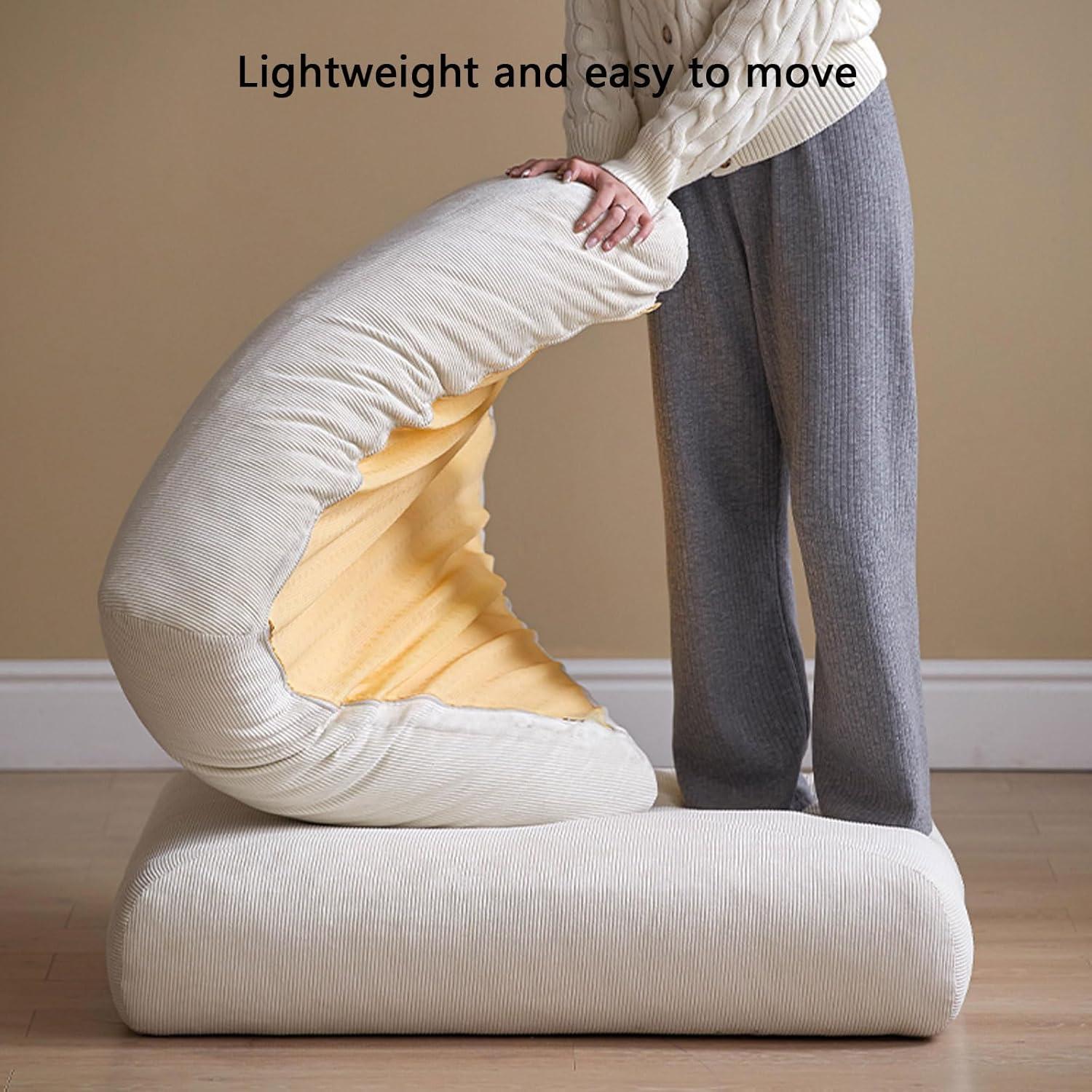 Transforming this piece from a compact chair into a spacious floor couch is remarkably simple, making it ideal for those seeking swift setup without hassle. The lightweight yet sturdy corduroy frame combined with high-elastic sponge filling ensures smooth folding and unfolds effortlessly. Whether we’re switching between lounging and sleeping modes or storing it away to save space,the process feels natural and requires minimal effort. Additionally, the integrated headrest and lumbar pillows, secured by straps and buckles, stay perfectly in place during folding and unfolding, maintaining stability and comfort throughout.