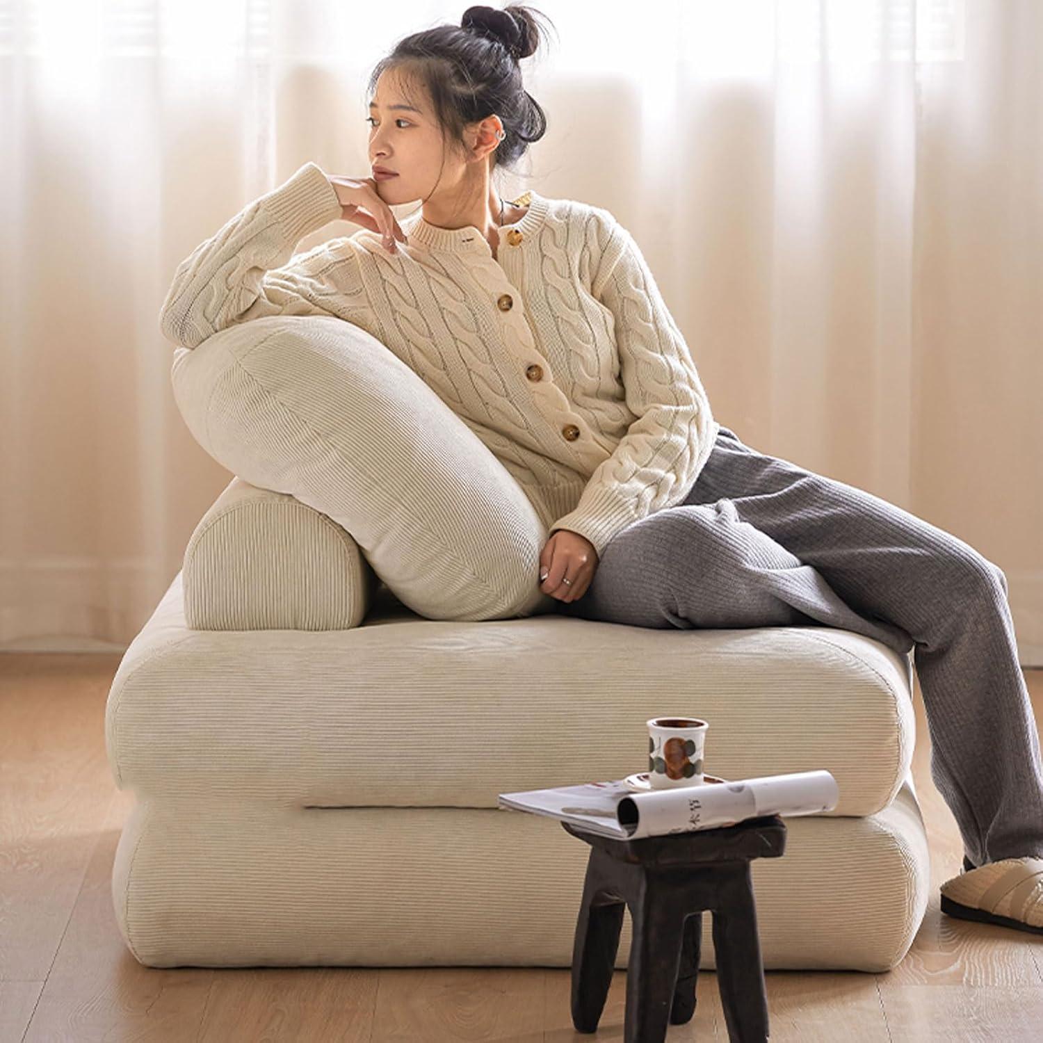 Our time with this versatile piece has been quite remarkable. Crafted from soft corduroy and filled with a high elastic sponge and plush down, it offers a level of comfort that makes lounging or napping a true pleasure. The integrated headrest and lumbar pillow provide excellent support, adjustable and securely fastened with straps to prevent any slipping, which enhances the ergonomic experience whether sitting upright or reclining. Its foldable design transforms seamlessly from a compact chair into a cozy floor couch or sleeper, making it ideal for living rooms, dorms, guest spaces, or even a home office.