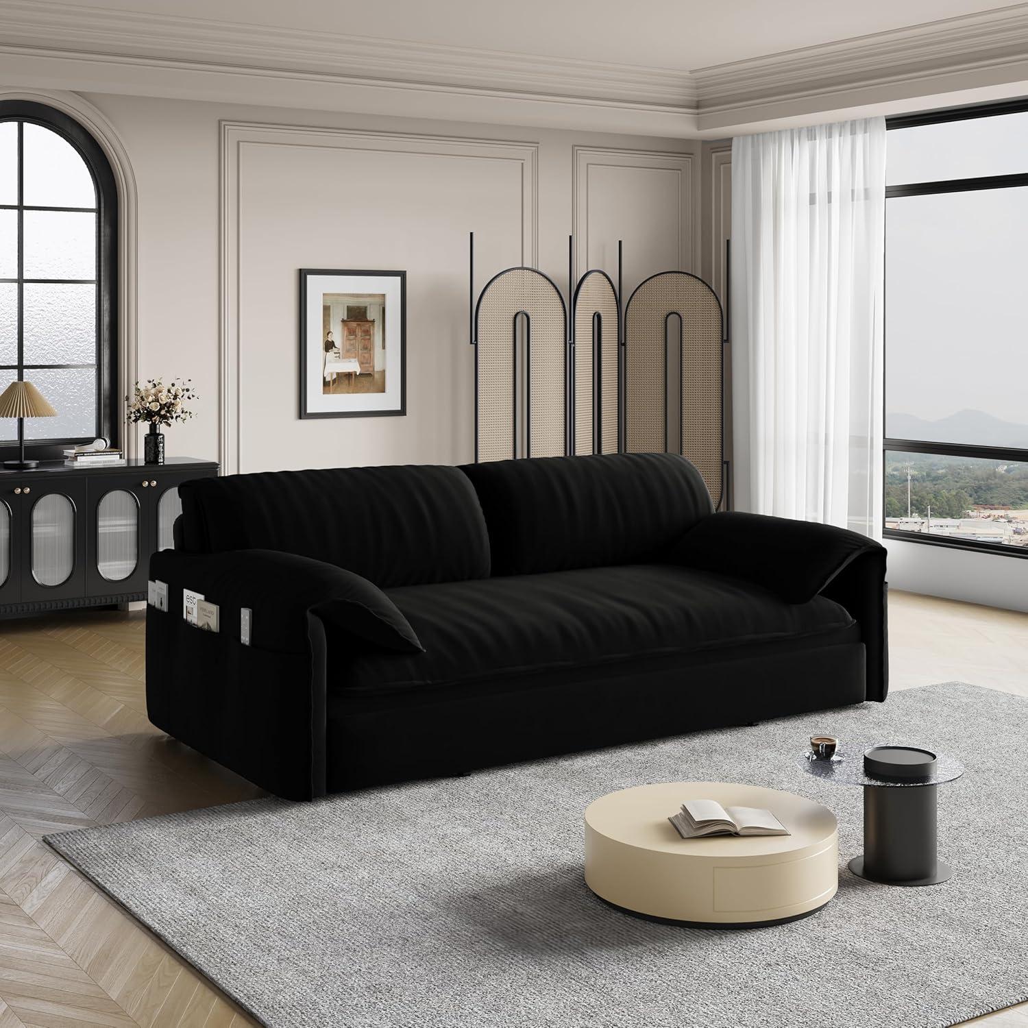 We believe this piece strikes an excellent balance between style, comfort, and functionality — especially for those with limited space. Its versatile 3-in-1 design allows for seamless transitions between a loveseat, chaise longue, and queen-sized bed, making it ideal for apartments, dorm rooms, or guest spaces. The soft velvet upholstery paired with high-density foam cushions ensures long-lasting comfort without compromising durability. Additionally, thoughtful features like built-in USB ports and side pockets enhance everyday convenience, letting you charge devices or keep essentials within easy reach.